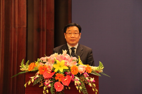 2011年11月14日,“中國三峽杯”全國首屆水電攝影大賽頒獎典禮在北京召開,劉琦副局長出席并頒獎,新能源和可再生能源司、政策法規司有關同志參加。圖為劉琦在頒獎典禮上講話。