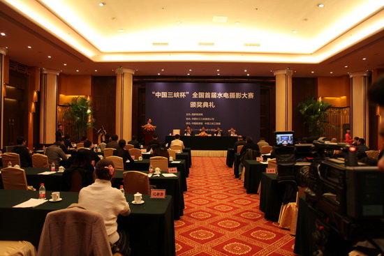 2011年11月14日,“中國三峽杯”全國首屆水電攝影大賽頒獎典禮在北京召開,劉琦副局長出席并頒獎,新能源和可再生能源司、政策法規司有關同志參加。圖為大會會場。 |