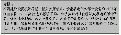 ????(五)農電管理體制尚未理順,發展中的困局需要破解。河南省有107家縣級供電企業為躉售供電企業,其中83家由河南省電力公司代管,縣級供電企業沒有和省電力公司形成資產紐帶關系。農網發展主要靠國家階段性改造資金,省電力公司投資規模較小,地方政府投資意愿不強,縣級供電企業受經營狀況影響自身投資能力差,種種因素制約農網投資能力和可持續發展。