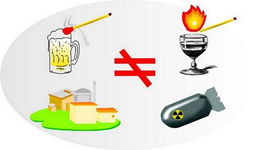 ????雖然核彈和核反應(yīng)堆都以鈾為原料,但兩者對純度要求完全不同:核彈要求鈾純度在90%以上,而核電站核燃料鈾純度只有3%左右,如此低的濃度根本不能發(fā)生爆炸,正如烈度白酒可以點燃,啤酒卻不能點燃的道理一樣。核電站50多年的發(fā)展歷史上,從未發(fā)生過核爆炸:切爾諾貝利核事故是蒸汽爆炸,日本福島第一核電站是氫氣爆炸,都不是核爆炸。