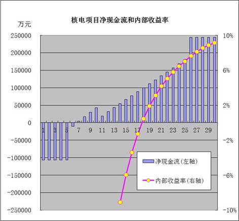 14、核電造價很高,如何保證其經濟性?核電站造價高,其主要原因是設計、材料、制造工藝的核級質量要求高,設備制造成本一般比常規設備高40-50%,并且電站設備中很大部分是安全冗余的,是為了核安全、環保的要求而配備的。目前國內的已經建成投產的二代改進型技術機組,單位造價達到13000元/千瓦,正在建設中的首批三代核電機組更高,在16000元-20000元/千瓦之間。而在國外,三代核電機組的單位造價預計更高達5000美元/千瓦。這么高的建設成本(是煤電機組的3倍以上),核電站如何實現經營的盈利性? 核電站的商業模式非常類似于大型水電項目,其經營過程是電力市場需求和技術分析、項目選址、技術選擇、設計、建設、發電運營、退役;其財務特點是投資巨大,固定成本高(包括折舊、貸款利息、退役基金),變動成本較低(其中燃料費、乏燃料基金占總成本的約25%);上網電價固定(國家發改委規定二代改進型機組電價為含增值稅0.43元/千瓦時),并不高于當地煤電標桿電價;客戶(電網)穩定,按國家政策優先于煤電上網發電,具有較高的上網負荷因子;電站的投資者在建設期投入資本金后,從電站投產起獲得利潤分紅,盈利前低后高,其內部收益率IRR經歷由負轉正的過程,在投產25-30年后達到國家核定電價下的水平(見示意圖:)。