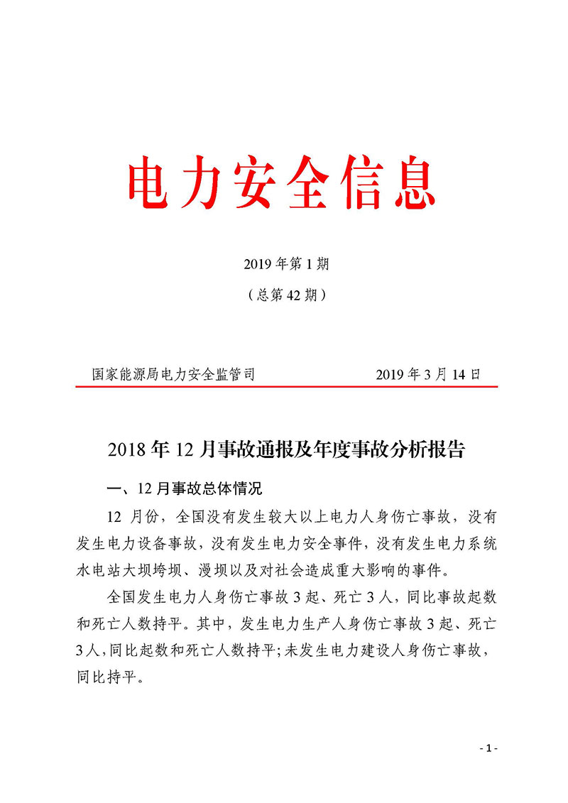 2018年12月事故通報(bào)及年度事故分析報(bào)告