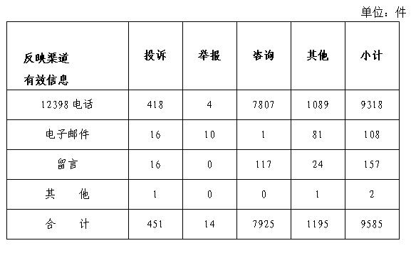 按訴求性質分類,投訴451件,占有效信息的4.71%;舉報14件,占有效信息的0.15%;咨詢7925件,占有效信息的82.68%;表揚、求助、建議等其他方面1195件,占有效信息的12.47%。 按反映渠道分類,12398電話9318件,電子郵件108件,留言157件,其他2件。 二、分類情況 2020年11月收到的有效信息中: 電力行業排在首位,有效信息數量為7455件,占全部有效信息的77.78%,群眾關注的內容主要集中于停電信息、電費收取、煤改電等方面。(2020年11月電力行業有效信息按業務分類情況見表二) 表二 2020年11月電力行業有效信息按業務分類情況