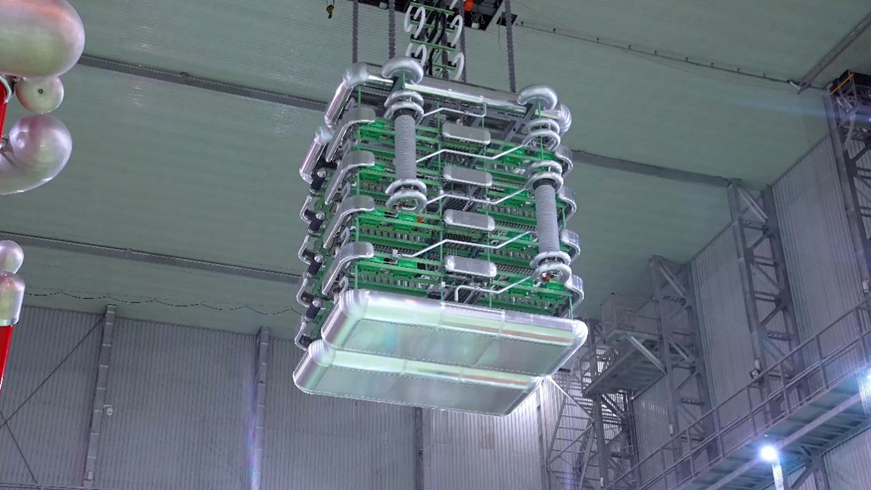完成單位: 國家能源高壓直流輸電技術與裝備研發(實驗)中心 二、支撐大規模新能源送出的高壓大容量柔性直流輸電系統 攻克了大規模新能源經柔性直流輸電系統送出的系統成套設計與穩定并網技術,研制了全球首套±800千伏/5千安柔直換流閥、電壓等級最高的適海性直流耗能裝置等成套技術裝備,建立了超大規模“新能源-柔直-大電網”硬件在環實時仿真平臺和海上風電柔性直流輸電工程現場調試技術體系。成果為推動我國大規模新能源開發與高效送出提供了重要技術支撐。