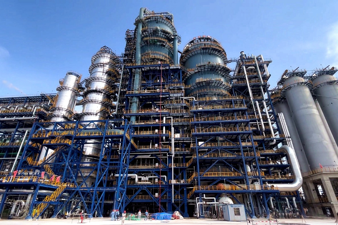 完成單位:中國(guó)石油 七、新型高效快速流化床催化裂解反應(yīng)器 我國(guó)原油資源普遍偏重、輕烴含量低,采用劣質(zhì)重油高效生產(chǎn)低碳烯烴對(duì)保障我國(guó)石油化工行業(yè)產(chǎn)業(yè)鏈安全具有重要戰(zhàn)略意義。該項(xiàng)成果創(chuàng)新性開(kāi)發(fā)了具有獨(dú)特結(jié)構(gòu)的快速流化床催化裂解反應(yīng)器,成功破解了劣質(zhì)重油無(wú)法高效轉(zhuǎn)化為低碳烯烴的行業(yè)難題。基于該項(xiàng)成果的300萬(wàn)噸/年重油催化裂解裝置于2023年6月建成投運(yùn),是全球首套快速床催化裂解裝置,填補(bǔ)了劣質(zhì)重油生產(chǎn)低碳烯烴的技術(shù)空白。