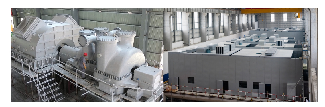 完成單位:中煤集團(tuán) 九、300兆瓦壓縮空氣儲(chǔ)能系統(tǒng)壓縮機(jī)和膨脹機(jī) 壓縮空氣儲(chǔ)能是大規(guī)模、長(zhǎng)壽命、高安全的新型儲(chǔ)能技術(shù),應(yīng)用前景廣闊。壓縮機(jī)和膨脹機(jī)是壓縮空氣儲(chǔ)能系統(tǒng)中的關(guān)鍵核心技術(shù)裝備。該項(xiàng)成果突破了300兆瓦先進(jìn)壓縮空氣儲(chǔ)能系統(tǒng)壓縮機(jī)、膨脹機(jī)全套關(guān)鍵核心技術(shù),研制出300兆瓦級(jí)“軸流+離心”壓縮機(jī)、300兆瓦級(jí)大流量多級(jí)寬負(fù)荷膨脹機(jī)。成果應(yīng)用于湖北應(yīng)城和山東肥城壓縮空氣儲(chǔ)能電站項(xiàng)目,推動(dòng)我國(guó)先進(jìn)壓縮空氣儲(chǔ)能技術(shù)邁向新的臺(tái)階。