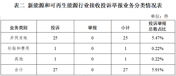 ![]() 新能源和可再生能源行業排在第二位,數量為27件、占投訴舉報總數的5.91%,主要集中在并網發電方面。